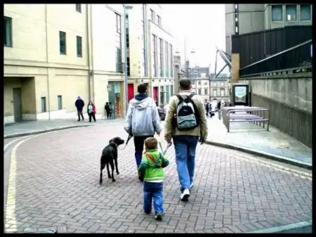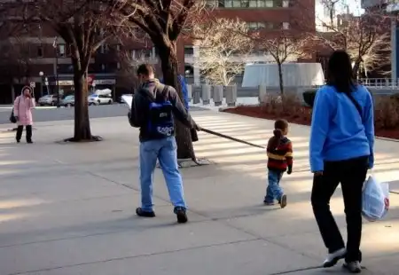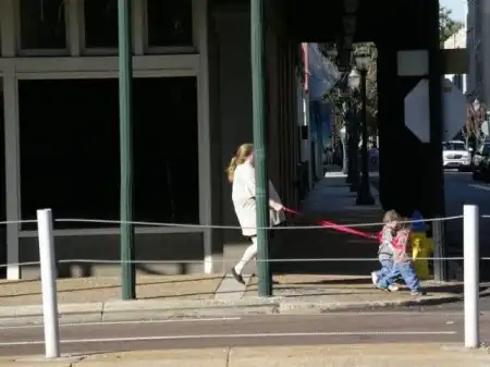 детей воруют только так, правильно, что на поводке, они ведь такие юркие, хоп и нету. В современном мире только так, да :)