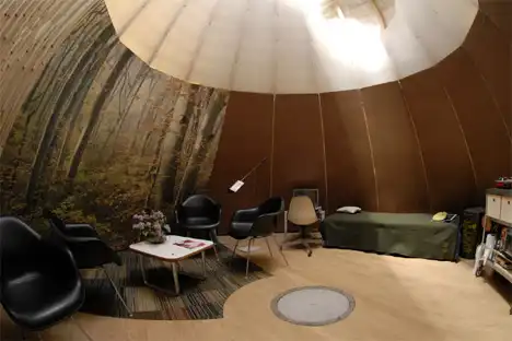 Дизайнер Джон Паананен (John Paananen), вдохновленный юртами и иглу, придумал красивый домик, куда можно сбежать от сиюминутных проблем. Правда, в отличие от юрт и иглу, разработка Джона Паананена может похвастаться новейшими достижениями в сфере науки – защитное покрытие из полипропилена, поликарбонатовые поддержки, комбинированная древесина – в общем, все, чтобы пребывание в шалаше размером 4,88 м в высоту и 5,10 в диаметре было безопасным и комфортным.