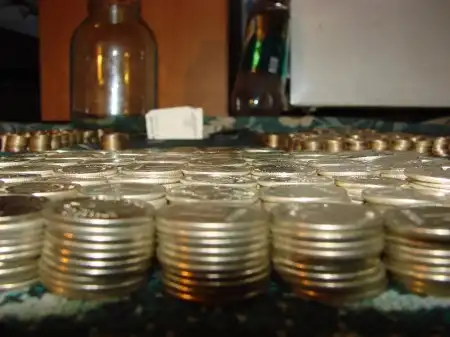 Банка собиралась четыре года. Но не копилась, туда просто скидывали завалявшуюся мелочь из карманов. для того чтобы не вытаскивать крышку приклеили на клей.