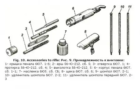 1.6.1. Принадлежность (рис. 9) служит для разборки, сборки, чистки и смазки снайперской винтовки и переносится в сумке для прицела и магазинов.