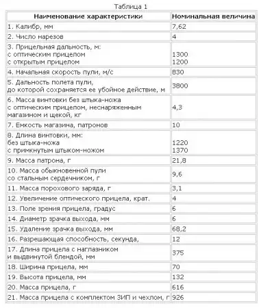 1.2.1. Основные конструктивные баллистические характеристики винтовки, винтовочного патрона и конструктивные данные оптического прицела приведены в табл. 1.