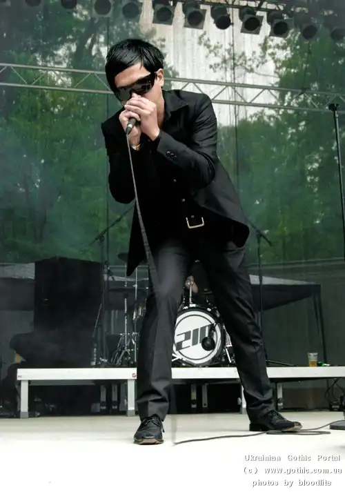 На площадку мы вернулись как раз к выступлению американских фьючерпопперов State Of The Union из Лос-Анджелеса. Все участники группы оказались как на подбор черноволосыми латиноамериканцами, что не удивительно, ведь более 70% населения Лос-Анжелеса ими и являются. О музыке говорить смысла нет – достаточно стандартный futurepop, но не без хороших мелодий. Правда, был завал с вокалом, который было практически не слышно. Помимо своих прямых обязанностей, вокалист периодически проводил пиар-акции, кидая зрителям диски группы. Барабанщик тоже не поскупился и в середине выступления зашвырнул в толпу один комплект палочек.