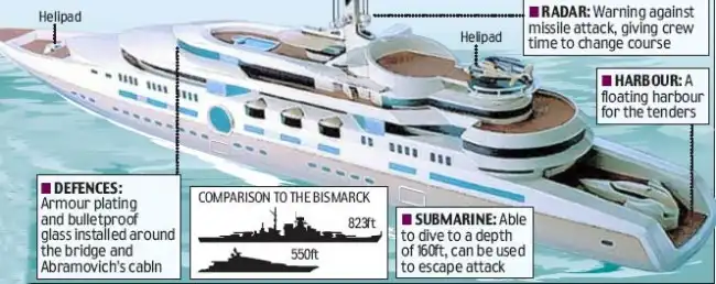 А вот про две вертолетные площадки, мини-пирс для лодок поменьше и про мини подводную лодку на борту упомяну..