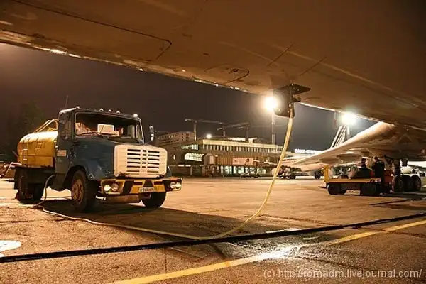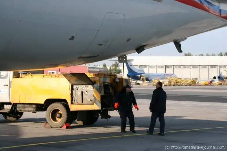 Итак самолет прилетает в аэропорт назначения. Сразу же по встрече подъезжает машина обслуживания туалетов с большим гофрированным шлангом.