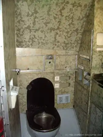 В баке это все дело хранится и накапливается весь полет. В работе туалета на А-320 и Ту-154М есть некоторые различия. В А-320 удаление отбросов из унитаза происходит с помощью вакуума. Вообщем, дерьмо, попросту засасывает в бак. Не знаю насколько реально присосаться к унитазу, но лучше не экспериментировать, т.к. теоретически это возможно. На Ту-154 в баке с отходами стоит фильтр, который задерживает крупные частицы (буээээ), а отфильтрованное отправляется насосом снова наверх, чтобы смывать унитаз. Вообщем, после длительного полета концентрация нехороших вещей в воде будет только увеличиваться. Для того, чтобы эта жижа сильно не воняла, в бак добавляют химию (бросают маленькие мешочки прям в горшок, которые потом растворяются и обеззараживают воду). Принцип действия и запах этой химии такой же, как в обычном биотуалете. Гоняется говно по кругу беспощадно. В Boeing-737 Classic система точно такая же. Жидкость в такой туалет необходимо заправить заранее, что и делается перед каждым вылетом.