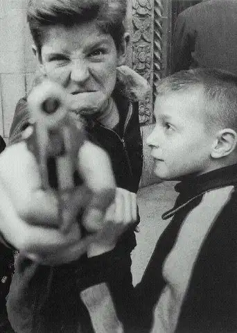 Уличная шпана, грозящая фотографу пистолетом. Да, ребенку всего 11 лет, и пистолет в его руках игрушечный. Он просто играет в свою игру. Но если посмотреть внимательно, то никакой игры в его глазах вы не увидите.