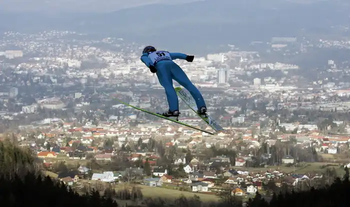 Finland's Harri Olli soars through the air during the large hill ski jumping FIS World Cup event in Liberec, Czech Republic on February 9, 2008. (REUTERS/David W Cerny)