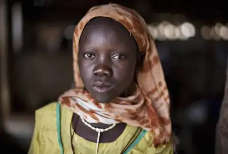 Kartoula, 14, a refugee from Sudan's western Darfur region, enters a distribution centre to receive monthly food rations at Djabal camp near Gos Beida in eastern Chad, June 5, 2008. (REUTERS/Finbarr O'Reilly)