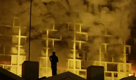 A fire rages out of control at the backlot filled with movie sets at Universal Studios in Universal City, California, 12 miles (19 km) from downtown Los Angeles June 1, 2008. A portion of the set used in Steven Spielberg's film "War of the Worlds" including a jet airplane is shown foreground. (Fred Prouser /Reuters)