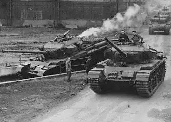 Далее расположились основной немецкий танк Второй мировой Mk-IV, современный английский Челленджер, советский Т-54/55, израильский Меркава и американский М-4 Шерман времен Второй мировой войны.