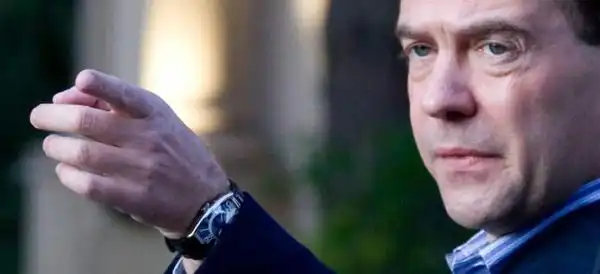 А вот часы президента РФ Дмитрия Медведева. Знатоки утверждают, что это Franck Muller Mariner 8080 стоимостью от $12 000 до $20 000.