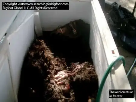 В прошлом году некий аноним написал во многие Американские медиа (интернет и не только), что он нашел тело Бигфута и пригласил издания поучаствовать в пресс-конференции, в доказательство своей находки , представив фотографии трупа Йети в холодильнике.
