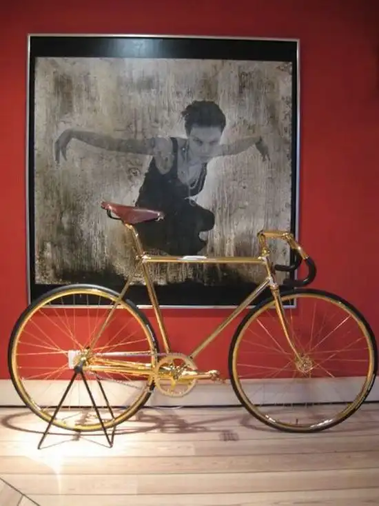 Всего было изготовлено 10 велосипедов, каждый из которых покрыт 24-каратным золотом и украшен 600 кристаллами Сваровски.