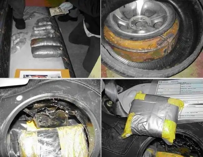 Фотографии того, в каких необычных местах американские наркополицеские находят в автомобилях грузы кокаина.
