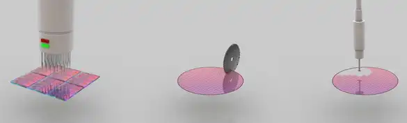 После того, как тесты определят, что подложка содержит достаточное число правильно функционирующих блоков, её разрезают на части (кристаллы).