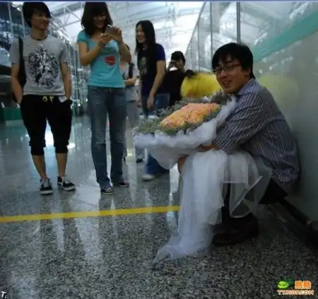 Купил красивый букет, дорогое кольцо, пригласил друзей с плакатами "Выходи за меня замуж" и пошел встречать девушку в аэропорт.