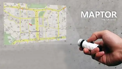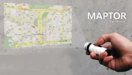 Больше всего этот замечательный концепт напоминает фонарик. У него есть лампочка и он проецирует свет на любую ровную поверхность (стену, тротуар, а при необходимости, то и просто на ладонь). Разница лишь в том, что проецируется не просто светлое пятно, а карта с точным местонахождением, а сам Maptor оснащен GPS-модулем и Bluetooth для беспроводной загрузки карт. Идея принадлежит двум индийским дизайнерам Jin-Sun Park и Seon-keun Park.