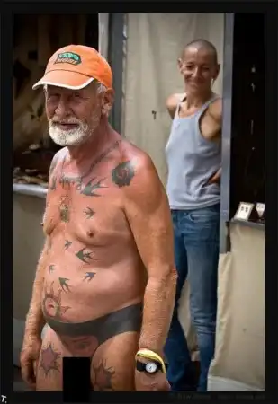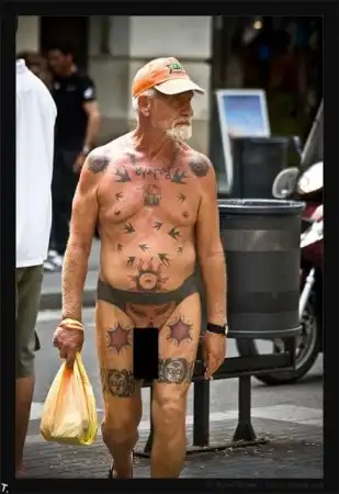 Мужчина пенсионного возраста, чье тело полностью покрыто татуировками, прогуливался полностью голым по центральным улицам города.