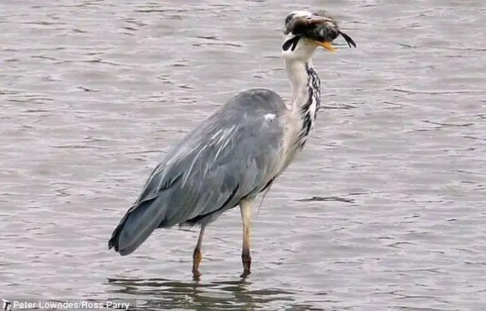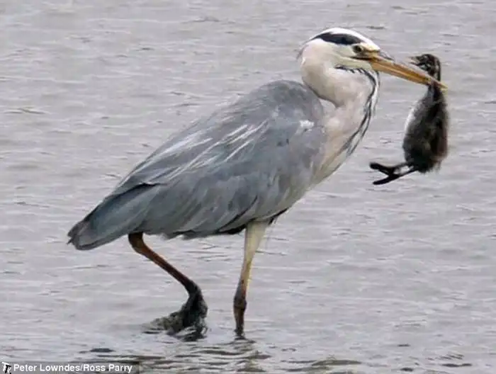 Эта цапля решила, что рыба - это слишком просто для нее и съела птенца лысухи.