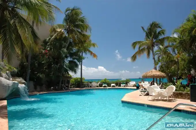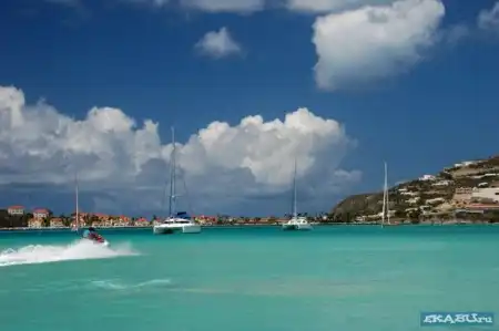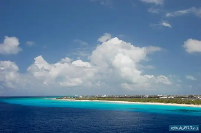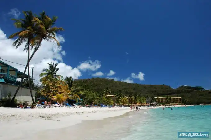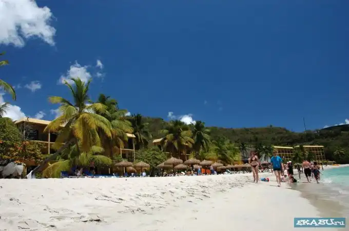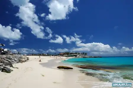 А еще остров знаменит тем, что его площадь всего 37 кв.км, и на нем 37 удивительных песчаных пляжей с белоснежным песком. Среди них - самый известный и самый большой на Карибах нудисткий пляж - Ориент Бич Пляж. С кучей голых теток и мужиков, из Европы. В-основном - голландцы и французы. К сожалению, фоток дать не могу, да и смотреть там особо не чего - моделей там явно нет, в основном публика - кому за сорок. Особенно интересно смотреть на амекриканских туристов, которые едут посмотреть на этот "ужас". Для них купаться и загорать голым - это табу и они с удивлением целыми экскурсиями едут посмотреть на этот пляж и на шокирующих их европейцев.