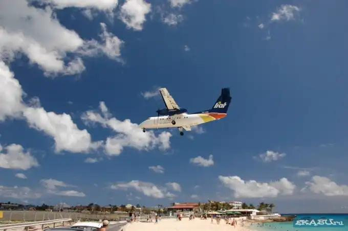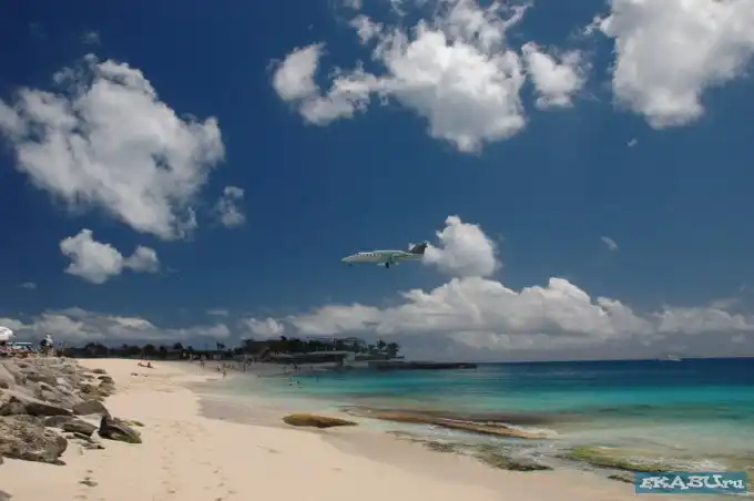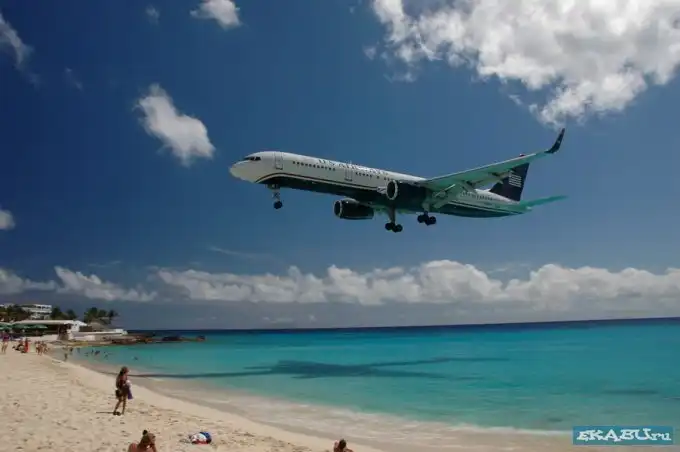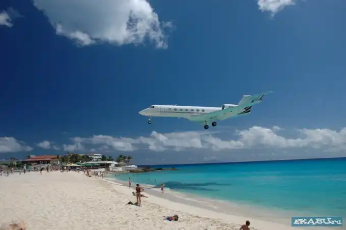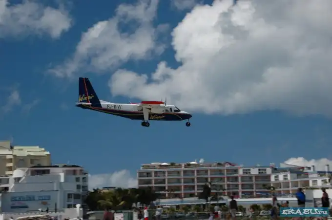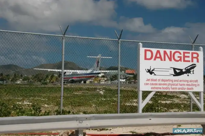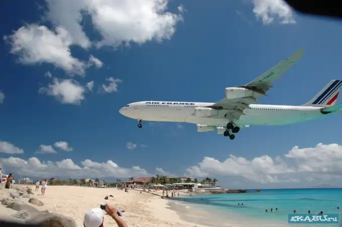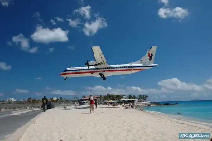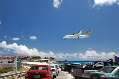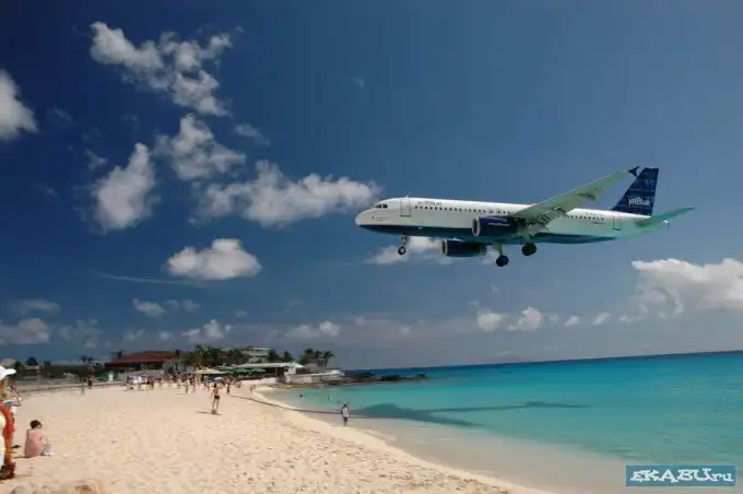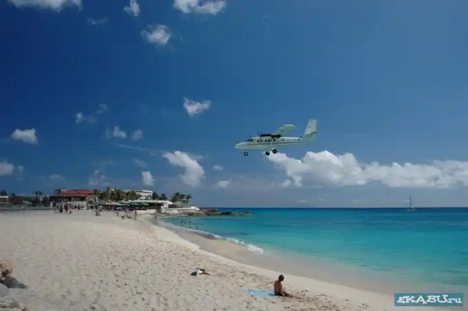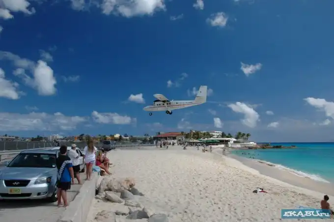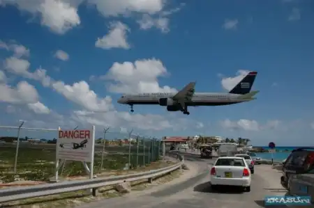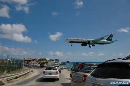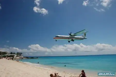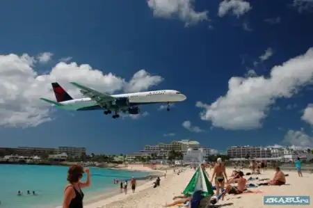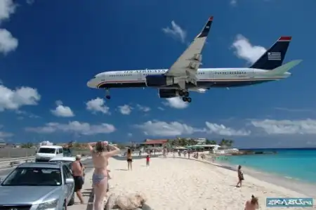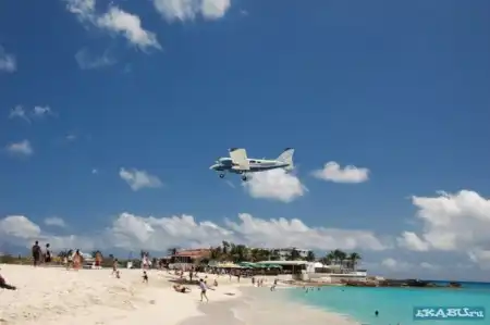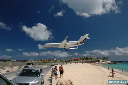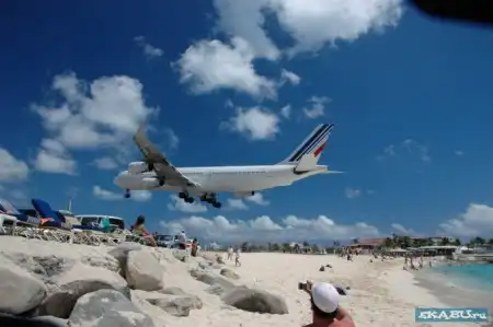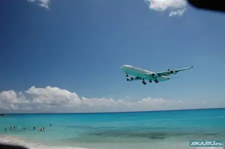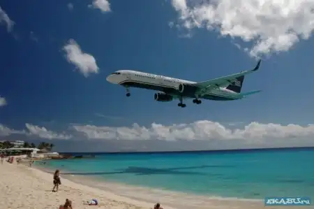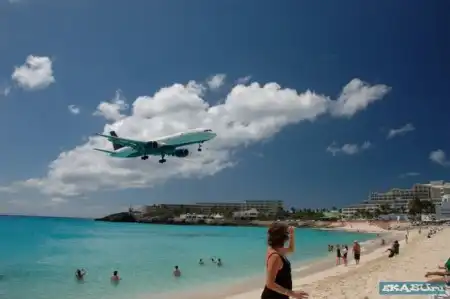 Знаменитый аэропорт Принцессы Джулианы на острове Сент-Мартен в Карибском море посреди Атлантического океана. Знаменит тем, что начинается он сразу за узкой полоской пляжа. По этому, самолеты садятся практически над головой купающихся зевак. Ежедневно на пляже собираются десятки людей, которые с камерами и фотоаппаратами снимают садящиеся самолеты. Самый разгар сьемок с часу дня до трех, когда прилетают самолеты из Америки и Европы. В основном из Парижа, Нью-Йорка, Майами и Бостона.