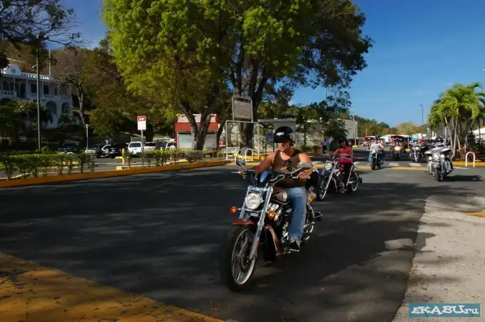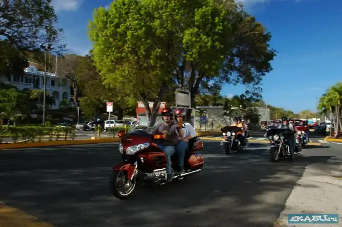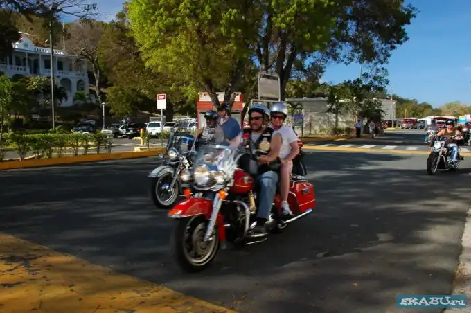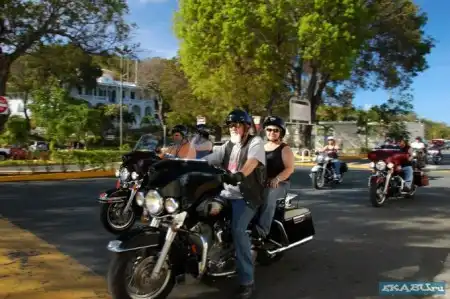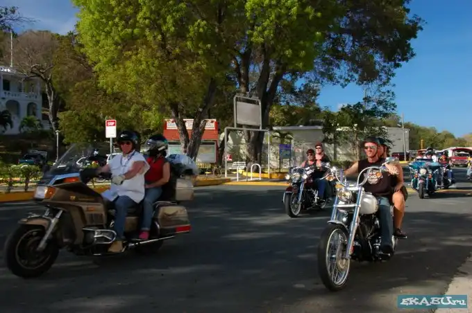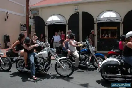 Взрослые тетки и дядьки из Оклахомы (США) путешествуют по миру на круизном корабле. На каждой заходе в порт на островах они вытаскивают своих железных коней и устраивают представление для местных зевак. Обьезжают весь остров, города, пляжи. Останавливаются, фотографируются, купаются, пьют пиво в немыслимых количествах - короче, отдыхают...