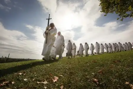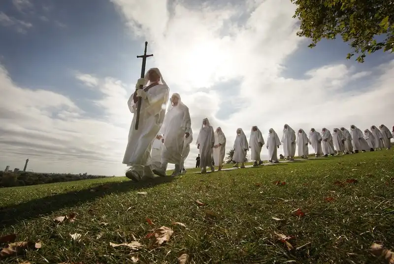 29. Друиды отмечают осеннее равноденствие на холме Примроуз 22 сентября 2009 года в Лондоне, Англия. Эта церемония – одна из трех событий ордена (двумя другими являются весеннее равноденствие в Тауэр Хилл и летнее солнцестояние, отмечаемое у Стоунхенджа). (Peter Macdiarmid/Getty Images)
