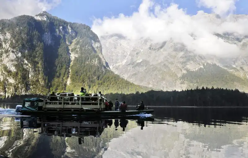 20. Фермеры и около 20 коров переплывают Королевское озеро на деревянном пароме недалеко от Шоенау, южная Германия, 3 октября 2009 года. Животные провели лето в горах, и теперь пришла пора везти их обратно на фермы. (STEFFI LOOS/AFP/Getty Images)