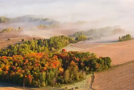 15. На этом пейзаже недалеко от Преск-Айл, штат Мэн, видны туманные поля и краски осеннего леса 25 сентября 2009 года. (Dina Rudick/Globe Staff)