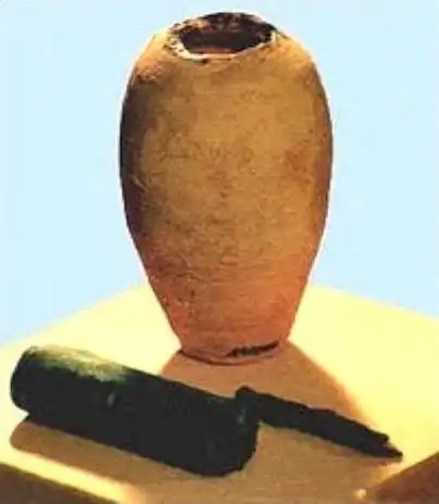 Когда археологи наткнулись на батарейку, то предположили, что это обычный глиняный горшок для хранения масла, но эта теория вскоре отпала, так как артефакт содержал медный прут со следами кислотной коррозии. Батарейка, заполненная кислотой или щёлочью, могла создать электрический ток напряжением в один вольт.