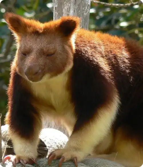 ВАЛАБИ. ДРЕВЕСНЫЕ КЕНГУРУ. К роду Древесных кенгуру – валлаби (Dendrolagus) относят 6 видов. Из них в Новой Гвинее обитают D. Inustus или медвежий валлаби, D. Matschiei или валлаби Матчиша, имеющий подвид D. Goodfellowi (валлаби Гудфеллоу), D. Dorianus – валлаби Дориа. В Австралийском Квинсленде водятся D. Lumholtzi – валлаби Лумгольца (бунгари), D. Bennettianus – валлаби Беннета, или тхарибина. Первоначальным местом их обитания была Новая Гвинея, но теперь валлаби водятся и в Австралии. Древесные кенгуру живут в тропических лесах горных районов, на высоте от 450 до 3000м. над уровнем моря. Размер тела животного 52-81 см, хвост длиной от 42 до 93 см. Валлаби весят, в зависимости от вида, от 7,7 до 10 кг самцы и от 6,7 до 8,9 кг. самки.