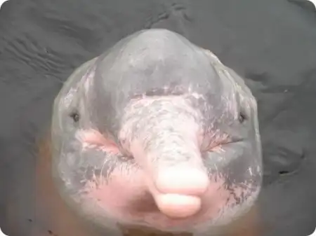 АМАЗОНСКИЙ ДЕЛЬФИН. Является самым крупным речным дельфином. Inia geoffrensis, как называют его ученые, достигает 2,5 метров в длину и массы 2 центнера. Светло-серые молодые особи с возрастом светлеют. Тело у амазонского дельфина полное, с тонким хвостом и узкой мордой. Круглый лоб, немного загнутый клюв и маленькие глаза – особенности этого вида дельфинов. Встречается амазонский дельфин в реках и озерах Латинской Америки.