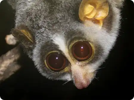 ЛОРИ. Характерная особенность лори – большого размера глаза, которые могут окаймляться темными кругами, между глаз имеется белая разделительная полоска. Мордочку лори можно сравнить с маской клоуна. Это, скорее всего, объясняет название животного: Loeris в переводе означает «клоун».