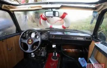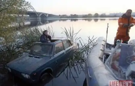 показывали по телику.мужик переоборудовал машину в катер, но средство арестовали по тому что у мужика не было прав на вождение оного