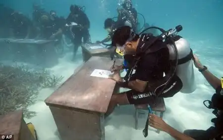 Правительство Мальдив провело заседание под водой, чтобы привлечь внимание мира к вопросам глобального потепления.Эта акция показывает, что ждет нас, если начнется таяние льдов. Молодцы.