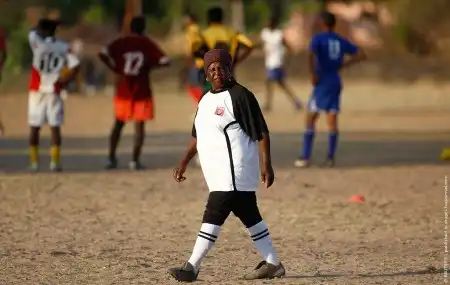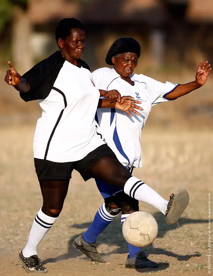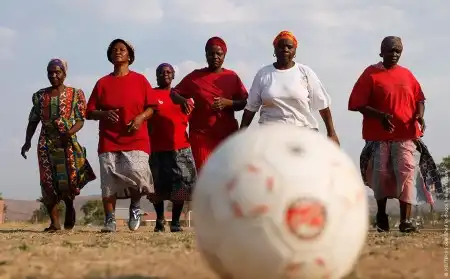 22.10.2009, ЮАР | Все более широкие слои населения ЮАР попадают под влияние футбольной лихорадки, охватившей страну в преддверии начала чемпионата мира по футболу. Бабушки деревни Нкованкова в провинции Лимпопо (660 км от Йоханнесбурга) разделились на команды и два раза в неделю приходят на местное футбольное поле, чтобы погонять мячик.