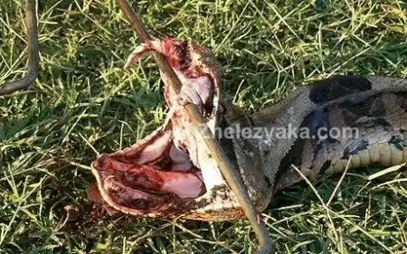 9. Ядовитая габонская гадюка из Африки, обладает самыми длинными зубами среди всех змей. При длине тела 1,2 м зубы у нее - 3 см.