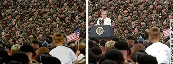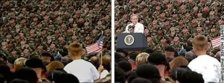 Март 2004: Снова предвыборная кампания в США. Даже солдаты на левой фотографии скопипастены.