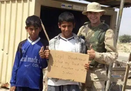 Апрель, 2004: Фотография, которая наделала много шума в Интернете. На картинке написано "Десантник Бордо убил моего отца и изнасиловал сестру". Во время допроса солдат отрицал эту надпись, говоря, что на самом деле там было написано "Добро пожаловать, морские пехотинцы". Так до сих пор и не ясно, что является оригиналом.