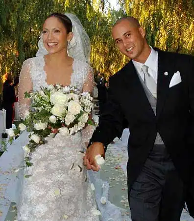 Когда Дженнифер Лопес выходила замуж за парня из своей подтанцовки Криса Джадда, она была уверена - это навсегда. Поэтому капризная дива обратилась к кутюрье Валентино Гаравани, который сшил для нее подвенечный наряд стоимостью около 60 тысяч долларов. На этот наряд ушли десятки метров кружева ручной работы; забавно - Дженнифер и Крис не прожили вместе и года.