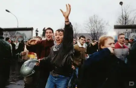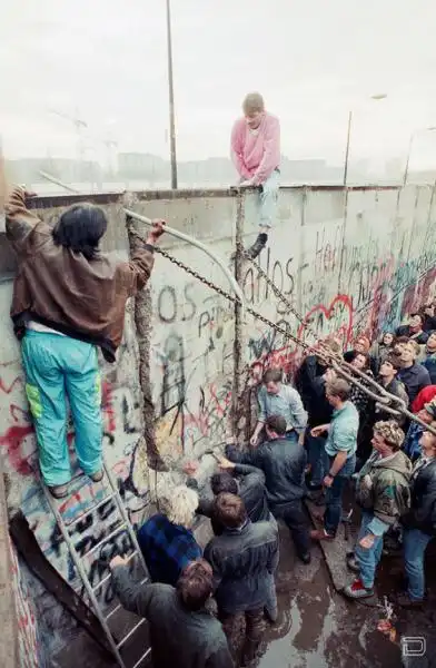 8. Совершенно другая сцена на Берлинской стене 9 ноября 1989 года, когда правительство Восточной Германии объявило после революции и нескольких недель восстаний, что все граждане ГДР могут посещать Западную Германию и Западный Берлин. Толпа празднует падение Берлинской стены. (Tom Stoddart, Getty Images)