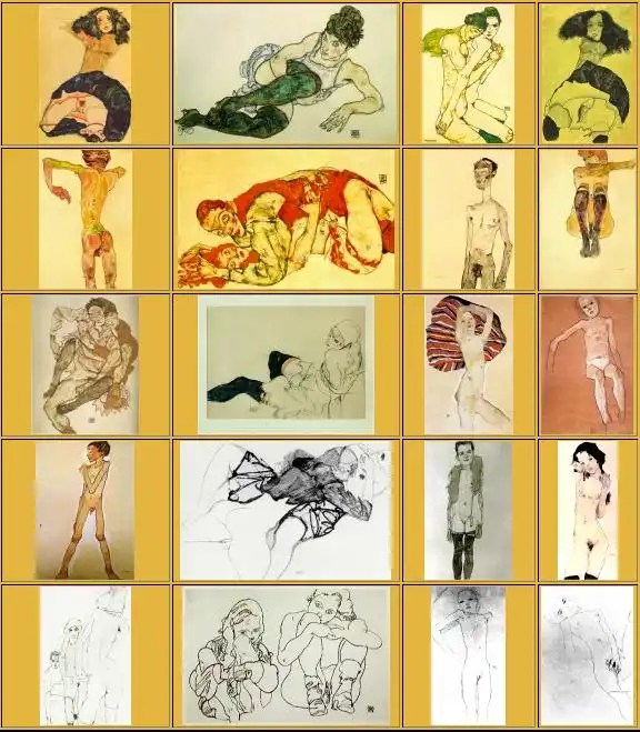 Шиле, ставший уже превосходным рисовальщиком, сделал много рисунков этих девиц, из которых многие были чрезвычайно эротичны.