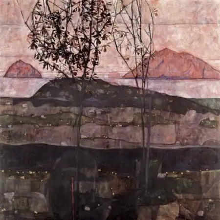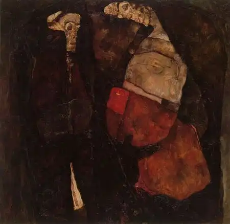 Эгон чувствовал особую связь с отцом. В 1913 году он писал шурину: « Я не знаю, есть ли кто еще на свете, кто вспоминает моего бедного отца с такой печалью, как я. Способен ли кто-нибудь понять, почему я посещаю те места, где он бывал, и какую боль я чувствую при этом. Я верю в бессмертие всех существ. Почему я рисую могилы и тому подобные вещи? Потому что умершие продолжают жить во мне».