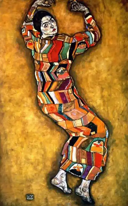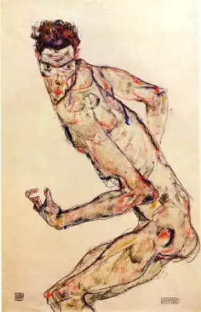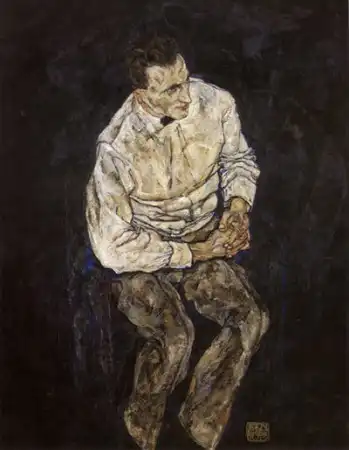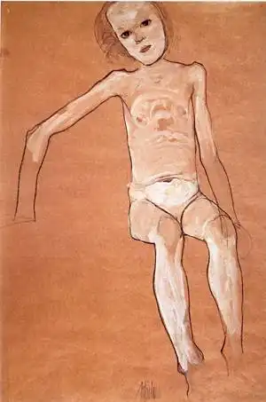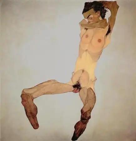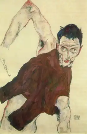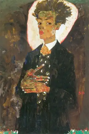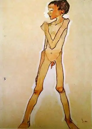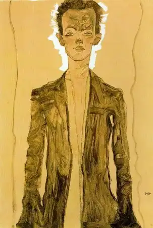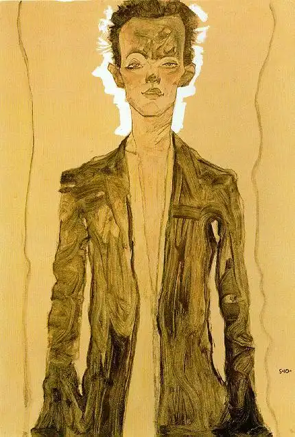 Говорят, он поставлял свои рисунки коллекционерам порнографии, которых в то время в Вене было множество, и это составляло значительную часть его доходов. Шиле был очарован не только сексуальными подростками, но и собой. Он любил рисовать автопортреты и вкладывал в них весь свой талант и душу. Что и говорить. Он умел произвести впечатление. Артур Рёсслер, один из его самых верных защитников и покровителей, описывал его так: «Даже в присутствии импозантных мужчин, Шиле производил яркое впечатление. Он был высок, строен и гибок, у него были узкие плечи и длинные угловатые руки и пальцы. У него было загорелое безбородое лицо, обрамленное длинными темными непослушными волосами. Его широкий лоб рассекали глубокие горизонтальные морщины, что придавало его лицу трагическое выражение, казалось его все время грызет изнутри неизбывная тоска. Говорил он лаконично, и часто использовал афоризмы, что придавало его речи особую значимость, но значимость эта была не напускной, а естественной».