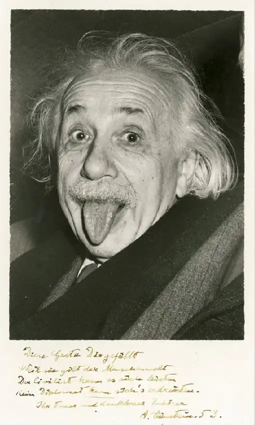 Одна из оригинальных фотографий Альберта Эйнштейна, показывающего язык фотографам, была продана за 74 324 доллара на аукционе в Нью-Хэмпшир 20 июня. Когда Эйнштейн подписывал фотографию, он сказал, что его жест был адресован всему человечеству.