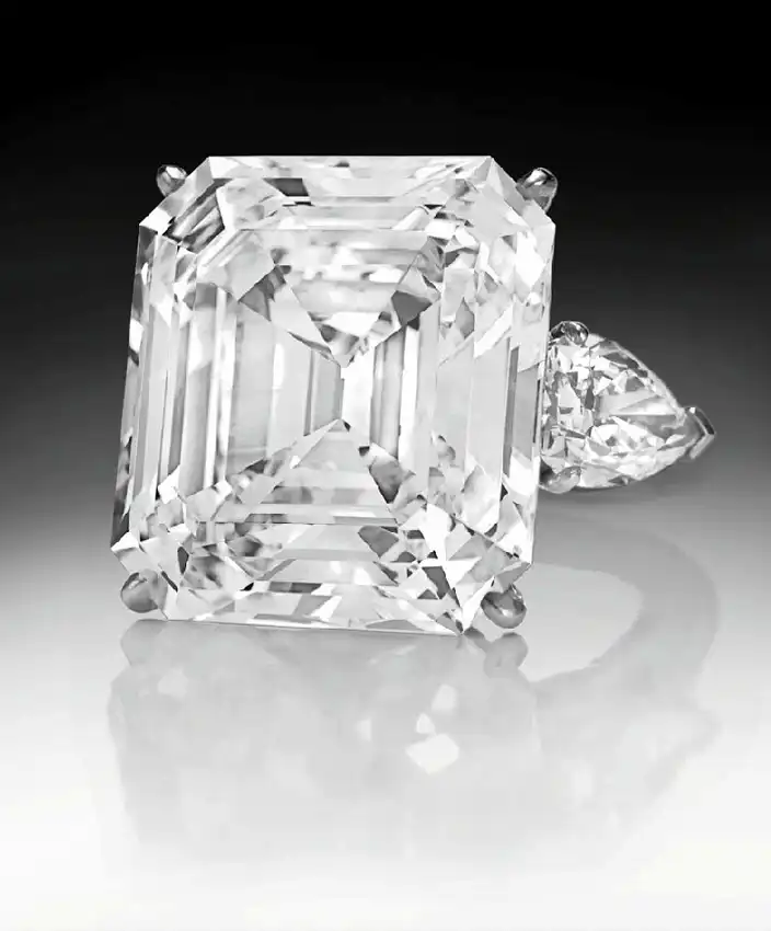 Этот квадратный бриллиант изумрудной огранки в 32.01 карат был продан на аукционе 21 октября за 7,7 миллионов долларов. Миллиардер и филантроп Леонор Анненберг, скончавшийся в марте, купил его на свой 90-ый день рождения. Аукционный дом «Christie's» не пожелал раскрыть имени покупателя. Кольцо ожидали продать по цене от 3 до 5 миллионов долларов.