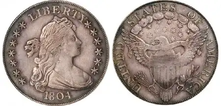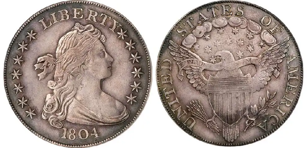 Этот серебряник 1804 года Адамса-Картера – одна из 15 так и не выпущенных в обращение монет. Монета, купленная за 2 миллиона на частном аукционе два года назад, ушла с аукциона Цинцинати 30 апреля за 2,3 миллиона.
