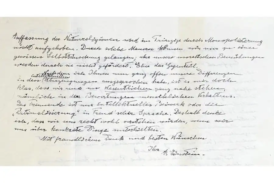 Это письмо, в котором Альберт Эйнштейн пишет о своем презрении к религии, было продано на Лондонском аукционе за 404 000 долларов 16 мая 2008 года. Покупателя описали, как «коллекционера с любовью к теоретической физике».