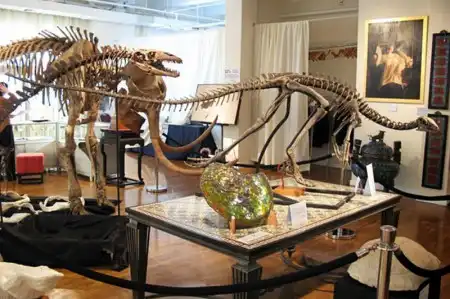 Видимо, кризис сказывается и на динозаврах. Этот полный скелет динозавра, которому 150 миллионов лет (справа), не нашел покупателя на аукционе в Нью-Йорке 21 марта. 2-метровый скелет дриозавра, присоединившийся на этом снимке к другим предметам распродажи, должен был быть продан за полмиллиона долларов.