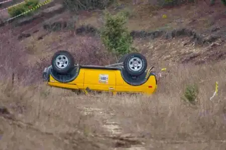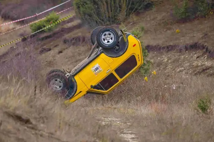 Во время ралли, одна из машин перевернулась, но экипажу удалось завершить гонку.